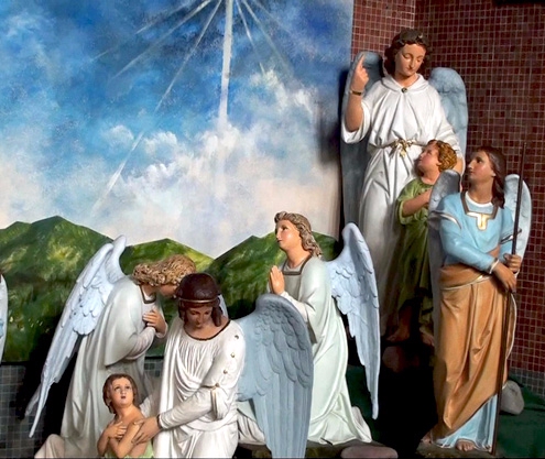 The angels are great, spiritual, non-corporeal creatures. They are the servants and messengers of God and they surpass in perfection and power all visible creatures. Christ is the centre of the angelic world; they are His angels. The angel Gabriel announced His birth and that of John the Baptist. They surround Jesus in infancy, serving Him in the desert, strengthening Him in his agony in the garden. Again it is angels who proclaim the Good News of Christ's Resurrection: ‘Why look among the dead for someone who is alive? He is not here, he is risen.' (Luke 24:6) In her public worship, the Church joins with the angels to adore the all holy God. And from infancy every man, woman and child has a guardian angel as a watchful protector and powerful intercessor.